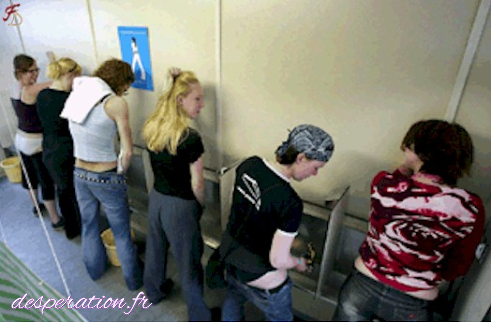 Après un long moment d’attente, elle expulse un long jet de pipi à travers sa petite culotte