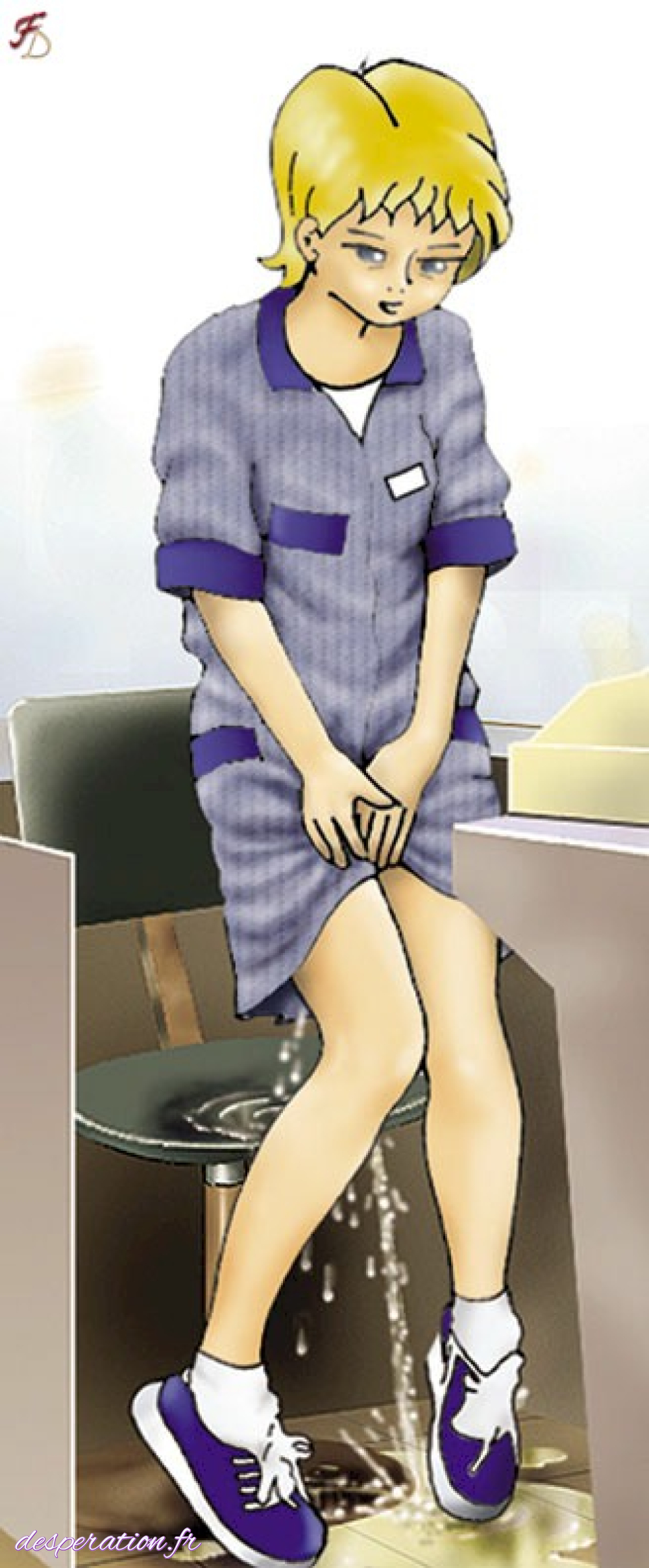 La vessie pleine, elle ne peut éviter l'accident dans sa culotte déjà trempée en public.
