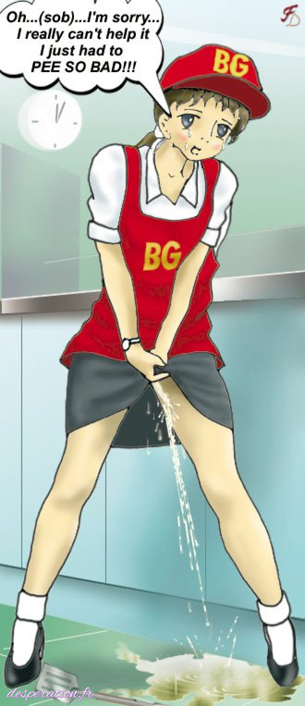 Après un long moment d’attente, elle expulse un long jet de pipi à travers sa petite culotte