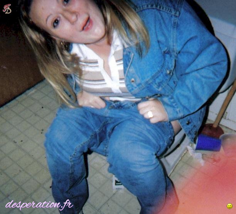 La miss est en train se soulager dans sa culotte pleine de pisse en public.