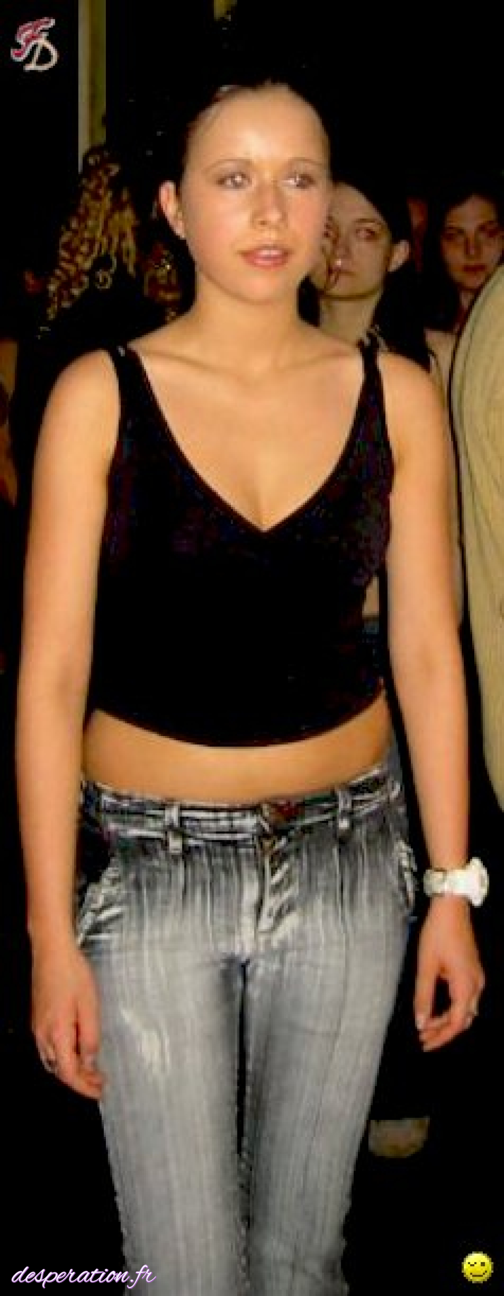 La vessie pleine, elle ne peut se retenir de pisser dans sa petite culotte en public.