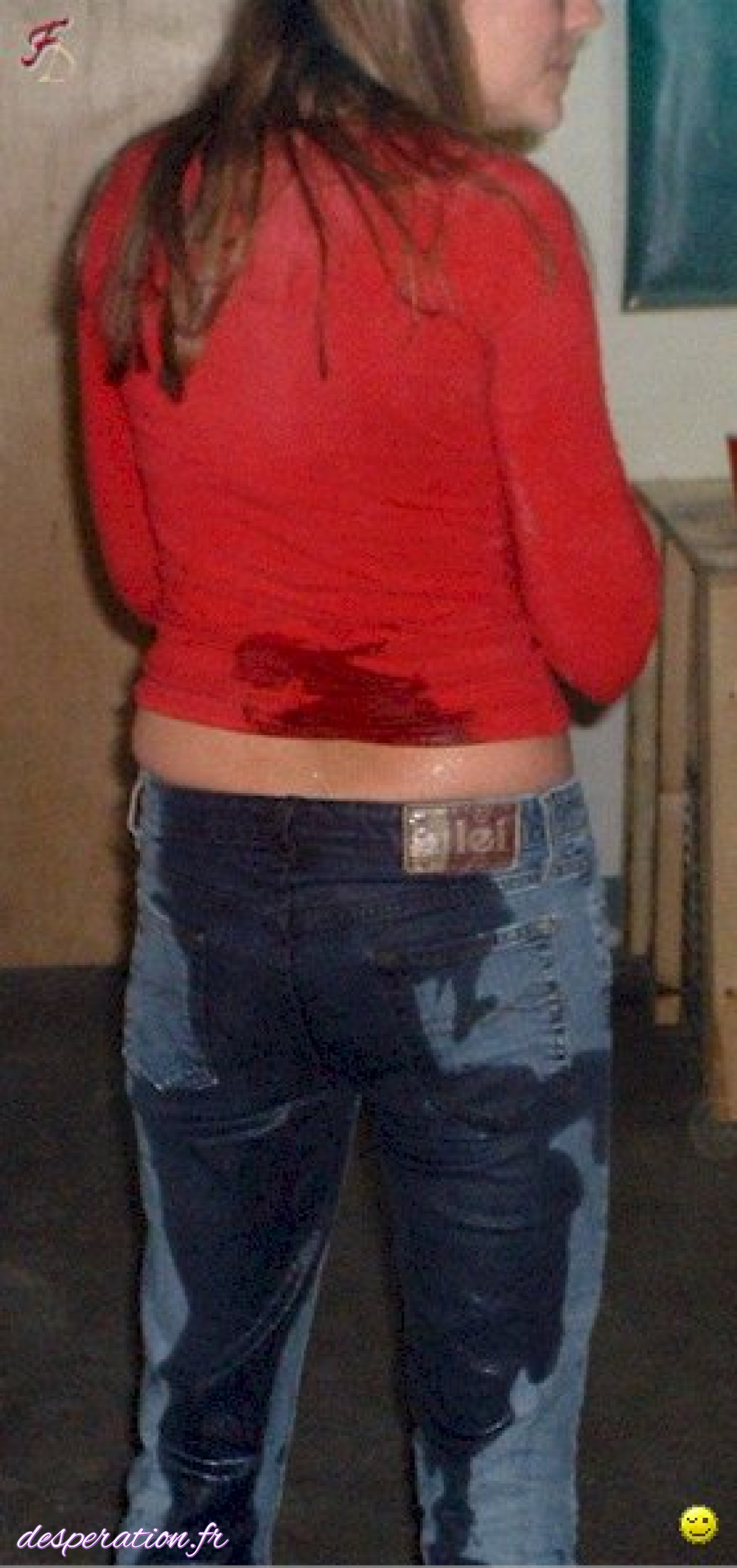 Elle prend un plaisir fou à se pisser dessus Dans sa culotte inondant le plancher au vu et au su de tout le monde.