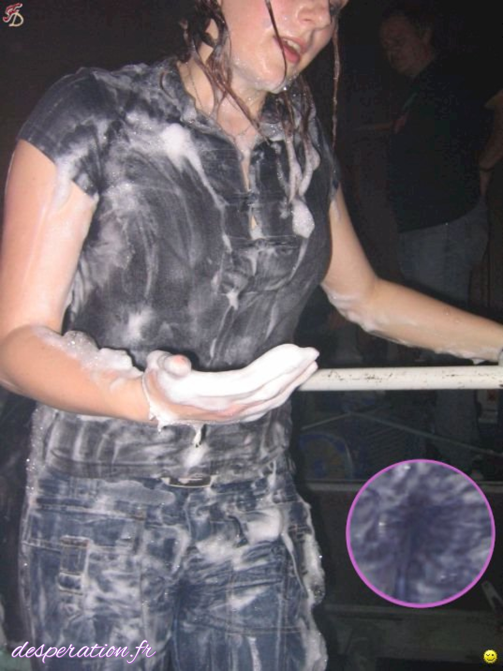 La miss est en train se soulager dans sa culotte pleine de pisse au vu et au su de tout le monde.