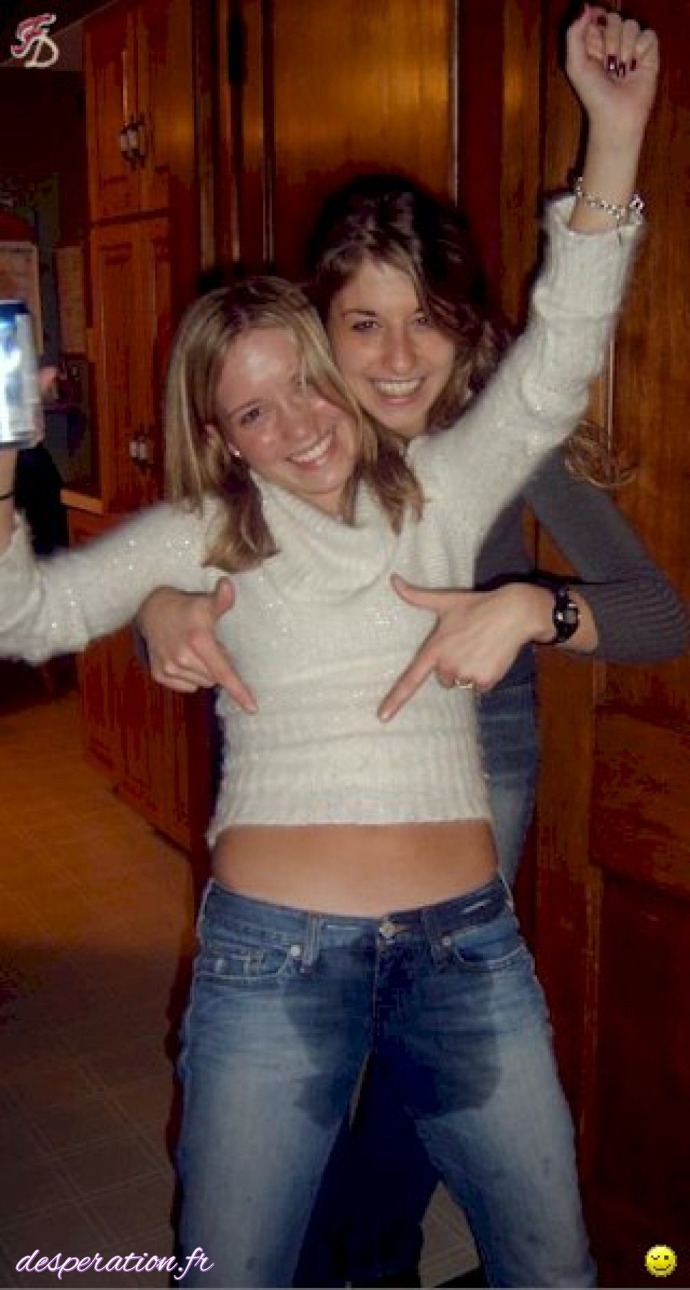 Désespérée, elle ne peut empêcher l'accident urinaire Dans sa culotte inondant le plancher devant les gens .