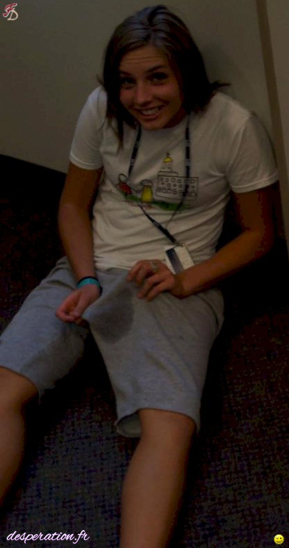 Désespérée, elle ne peut empêcher l'accident urinaire dans sa culotte bien collée à sa chatte en public.