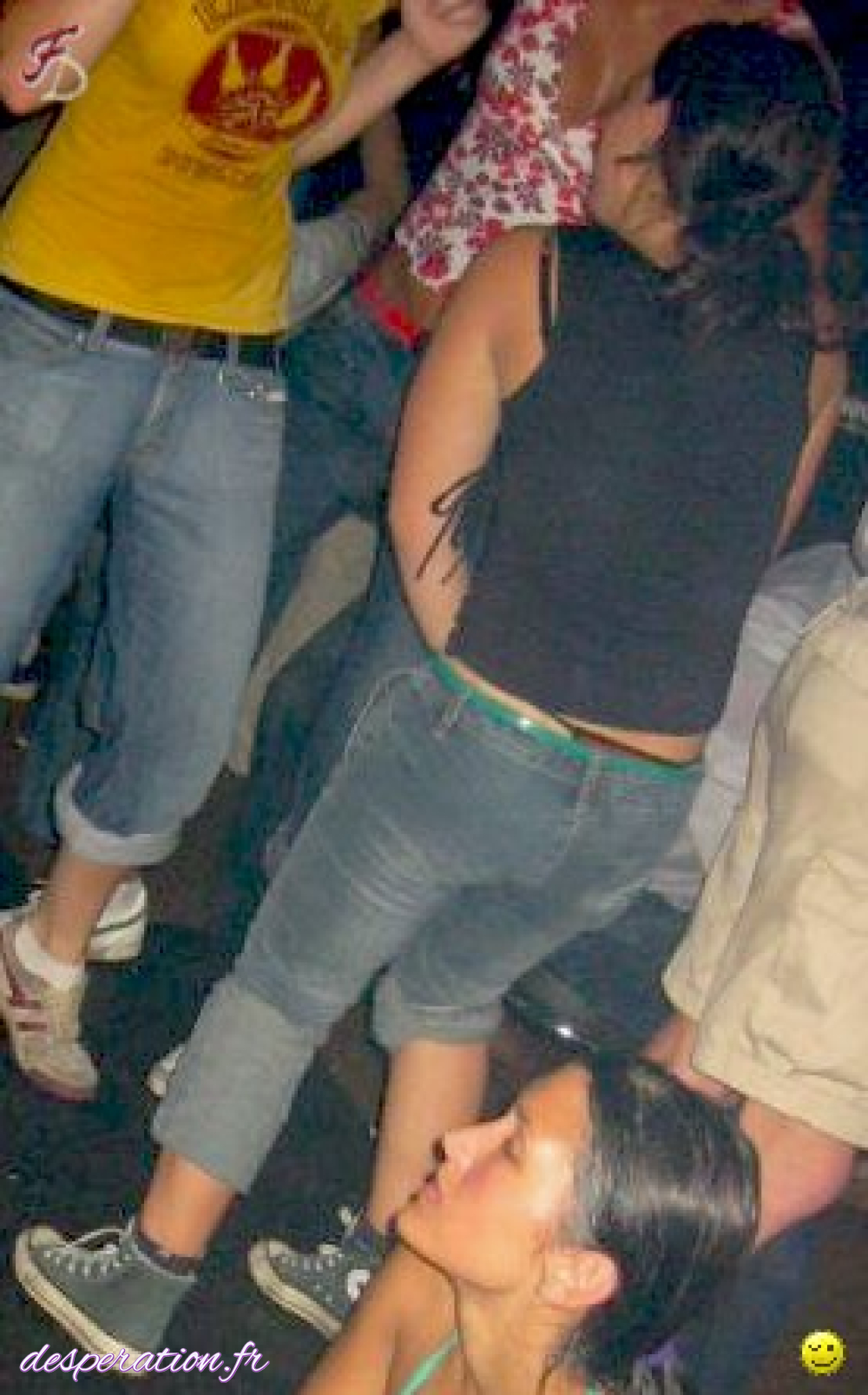 Une charmante demoiselle qui a la culotte toute trempée à travers sa petite culotte fine au vu et au su de tout le monde.