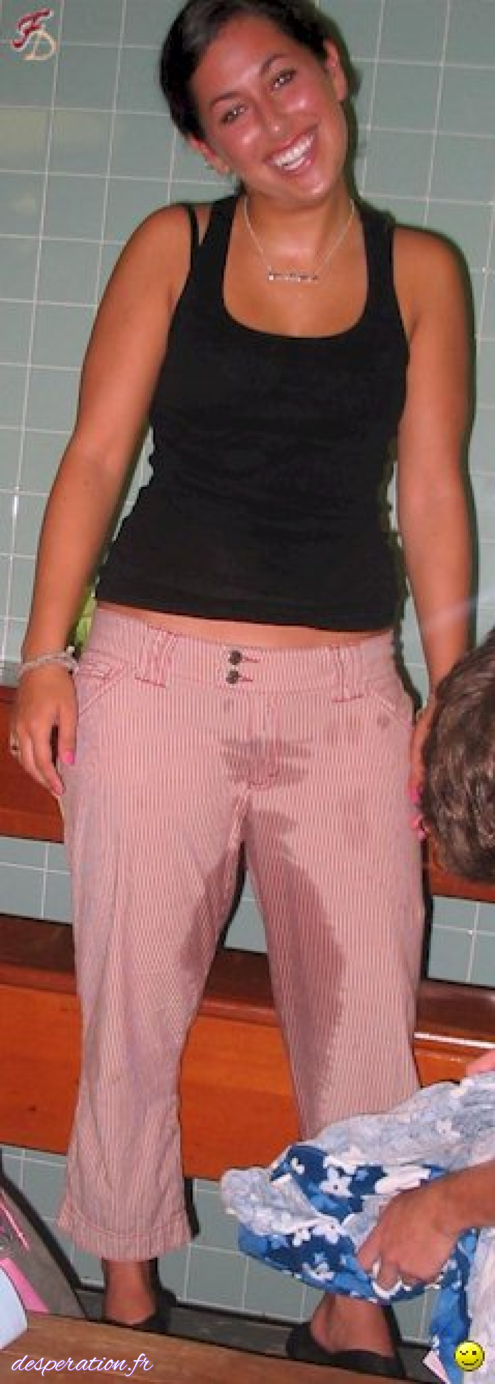 Elle se pisse littéralement dessus dans sa petite culotte au vu et au su de tout le monde.