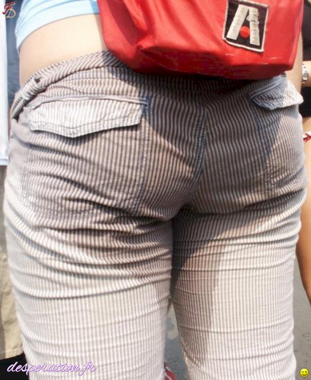 Désespérée, elle ne peut se retenir de faire pipi dans sa culotte devant les gens .