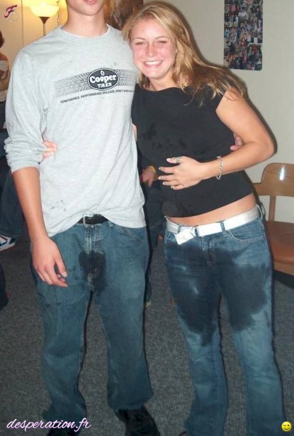 Une amatrice ondiniste se pisse dessus dans sa culotte humide dans un lieu public en extérieur.