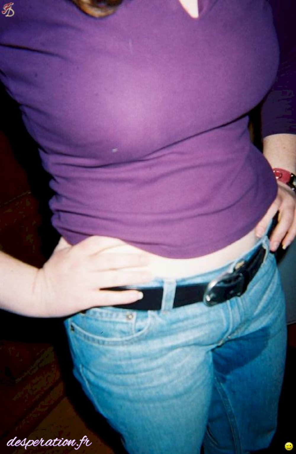 La miss est en train se soulager à travers sa culotte en coton devant le regard des passants.
