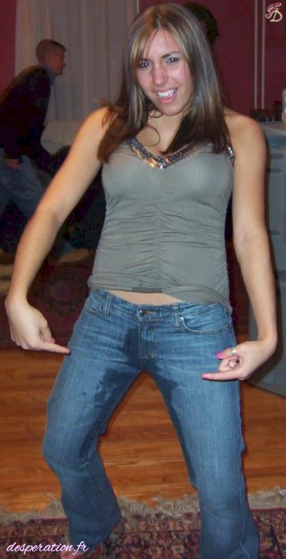 Elle a la culotte toute mouillée dans sa culotte pleine de pisse devant le regard des passants.