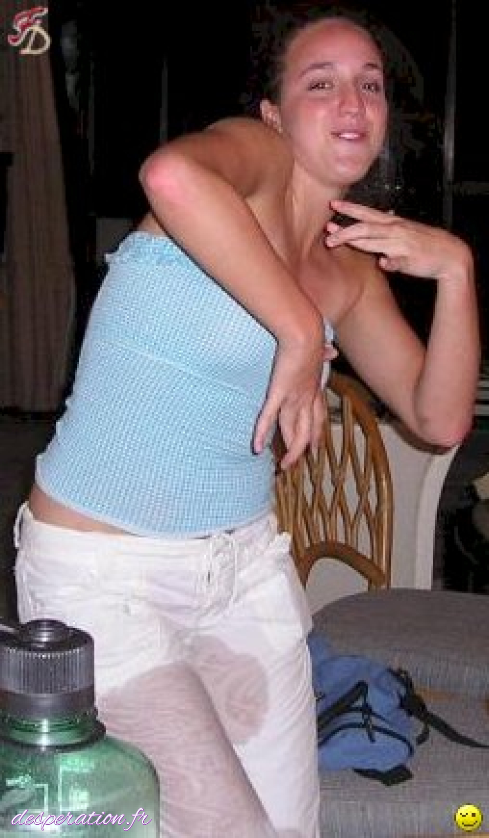 Une miss qui aime l'uro fait pipi dans sa culotte bien collée à sa chatte dans un lieu public en extérieur.
