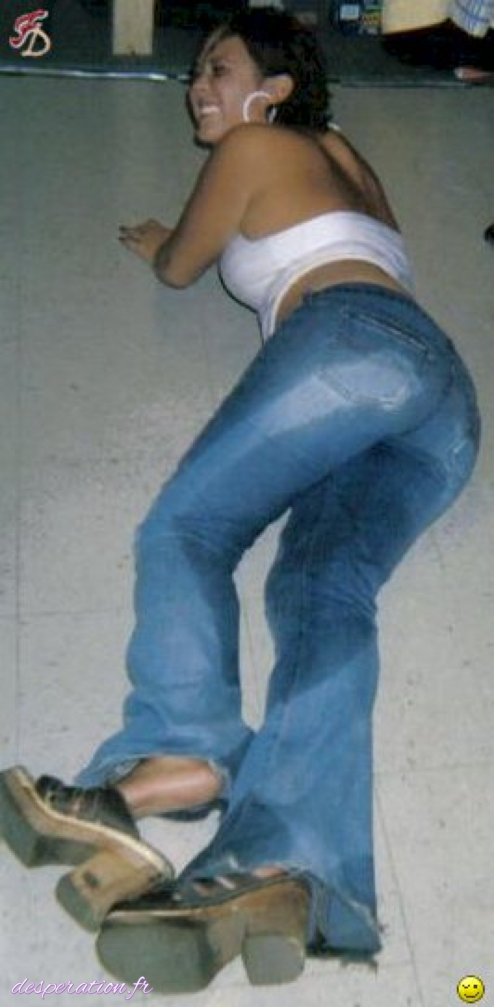 Saisie d’une envie pressante en public elle laisse échapper quelques petits jets dans sa culote