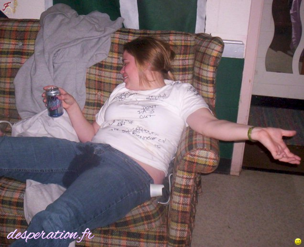 Elle a la culotte toute mouillée dans sa culotte pleine de pisse au vu et au su de tout le monde.