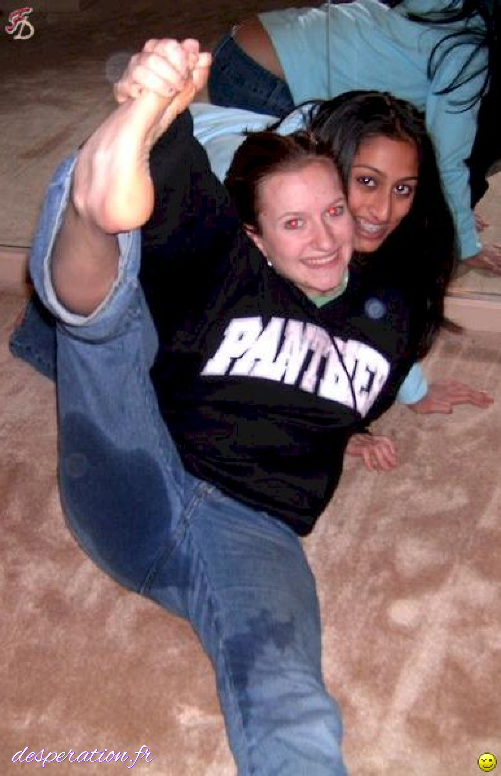 Désespérée, elle ne peut se retenir de faire pipi dans sa culotte bien collée à sa chatte dans un lieu public en extérieur.