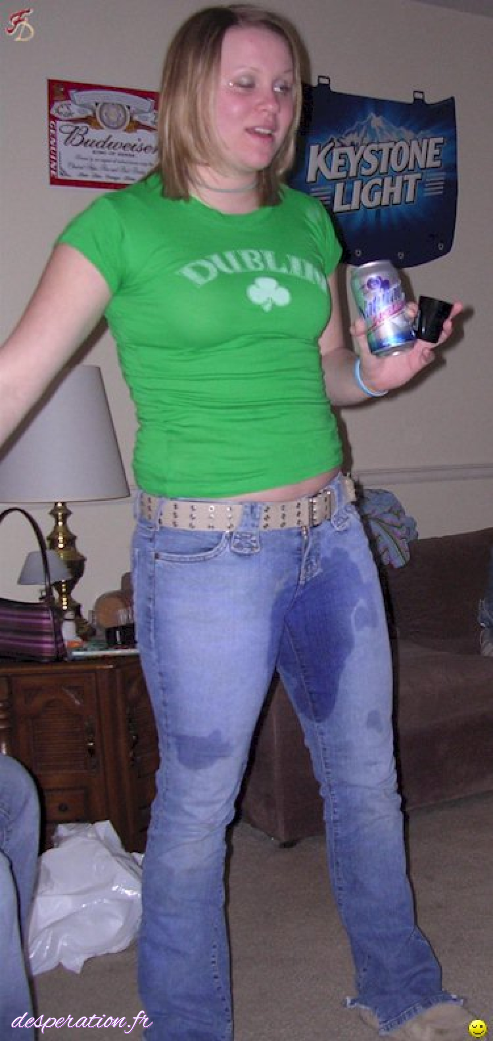 Elle ne peut se retenir de faire pipi dans sa culotte humide devant les gens .