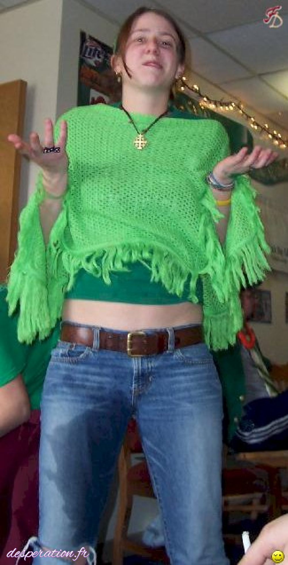 Elle est soulagée d’avoir fait pipi malgré qu’elle soit maintenant trempée