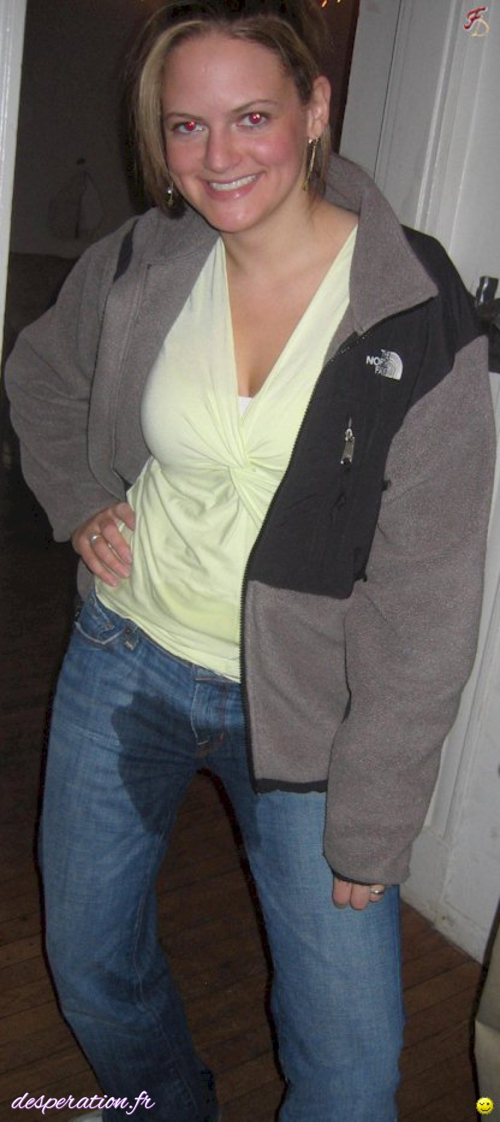 Oops elle a fait pipi dans sa culotte Dans sa culotte inondant le plancher devant les gens .