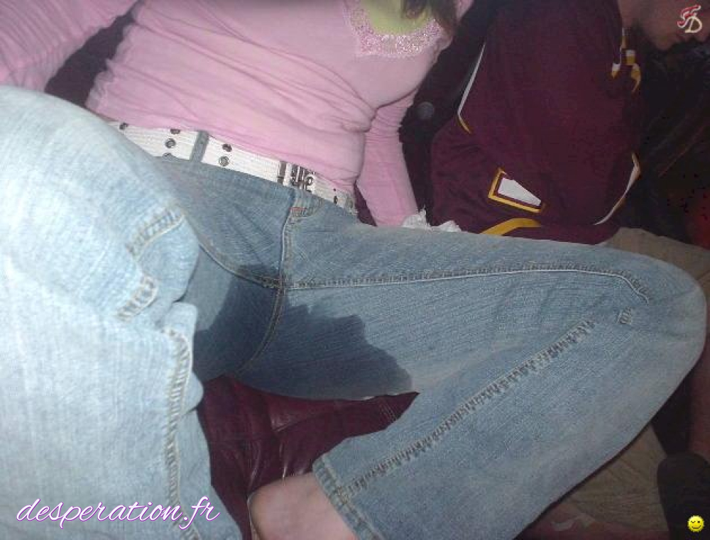 Elle aime son urine chaude inonder partout jusqu'aux fesses. Ã travers sa petite culotte fine devant les gens .