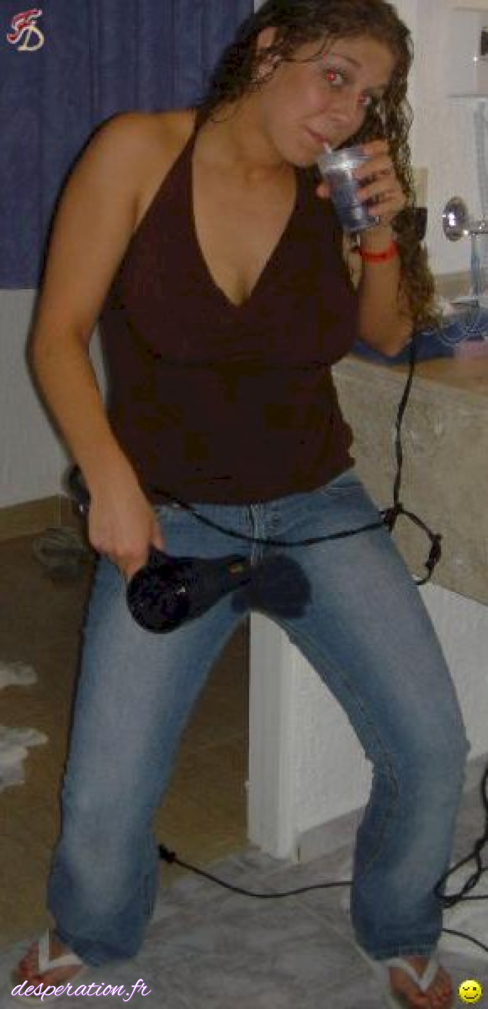 sa culotte est inondée de pipi devant les gens.