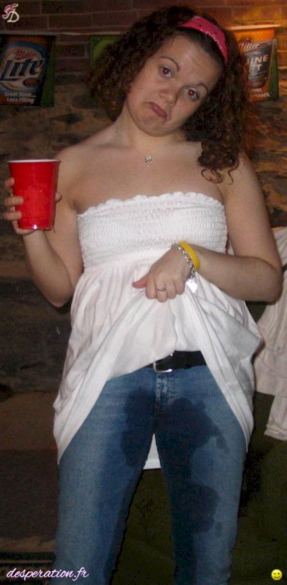 Elle vide sa vessie dans sa petite culotte trempée dans un lieu public en extérieur.