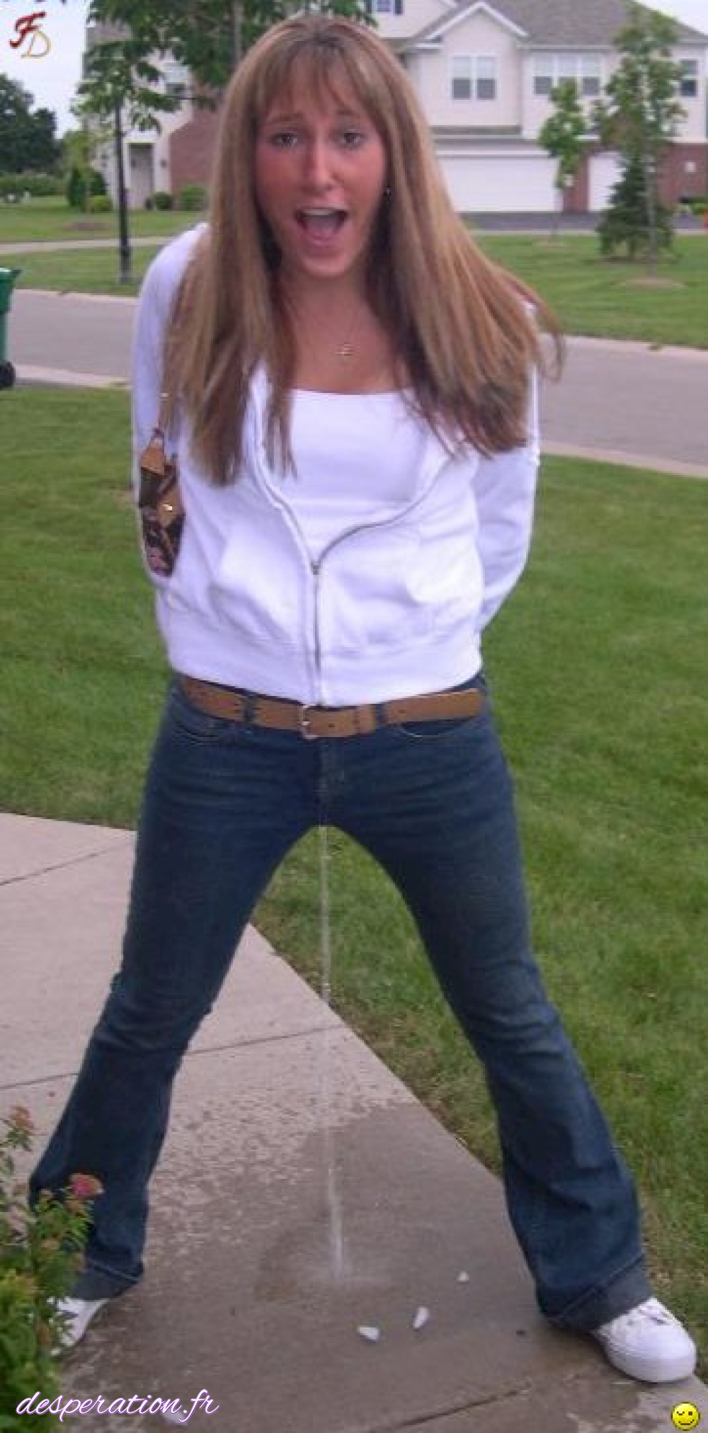 Désespérée, elle a un besoin particulièrement urgent de faire pipi devant le regard des passants.
