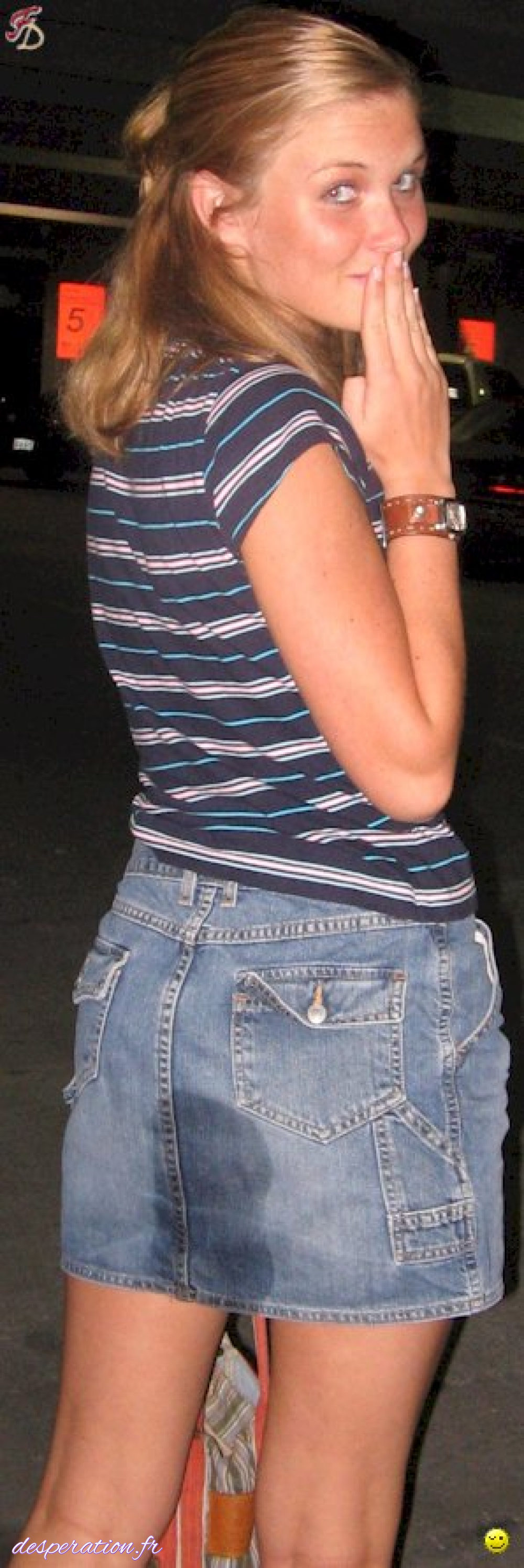 Une miss touche sa culotte toute trempée de pipi devant le regard des passants.