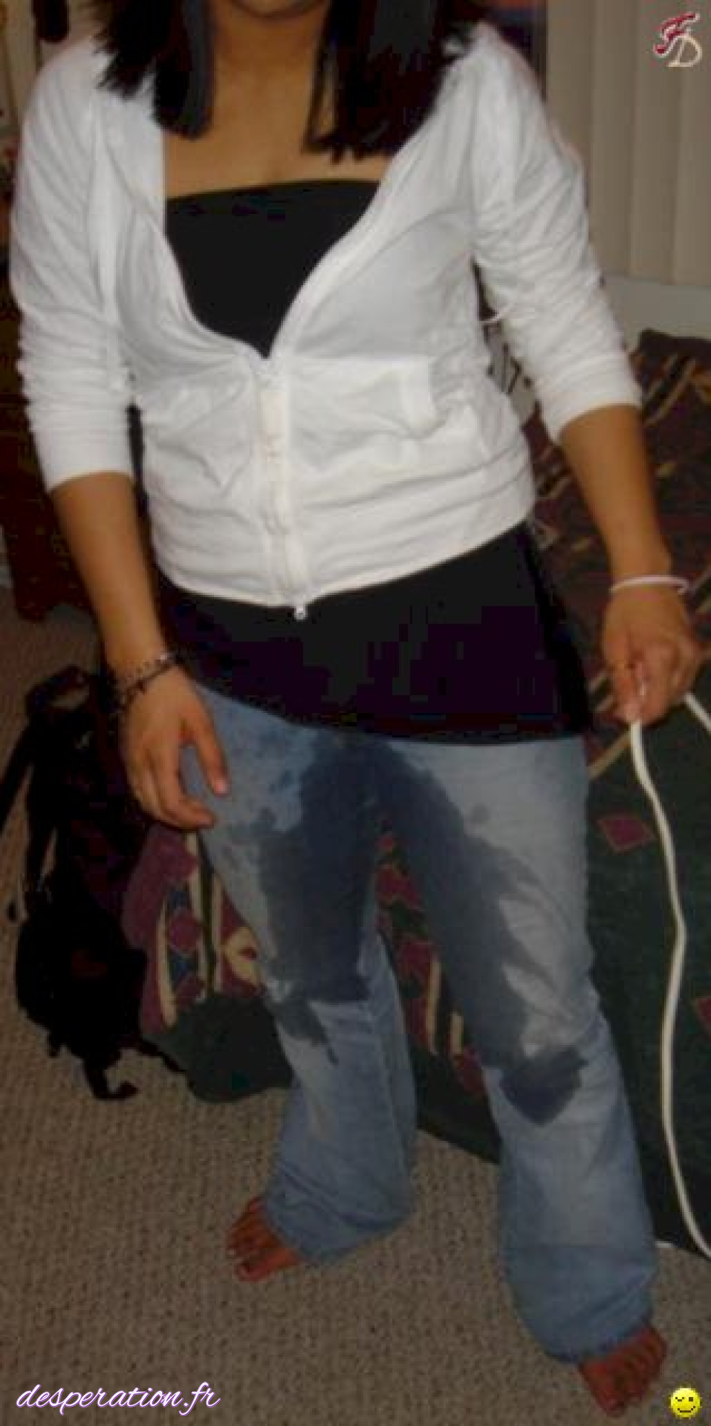Cette pauvre dame a un accident très embarrassant devant le regard des passants.
