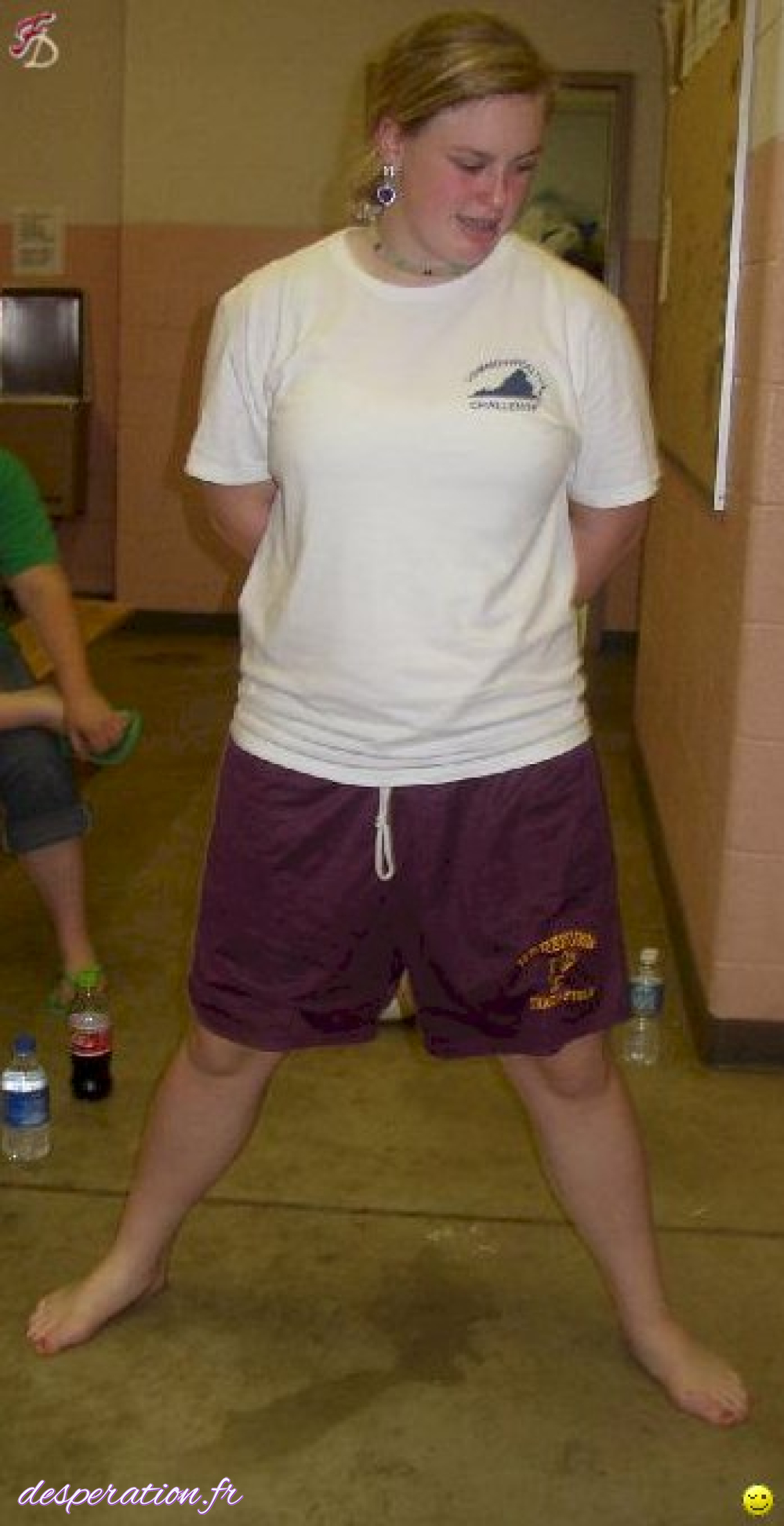 Désespérée, elle a un besoin particulièrement urgent de faire pipi devant tout le monde.