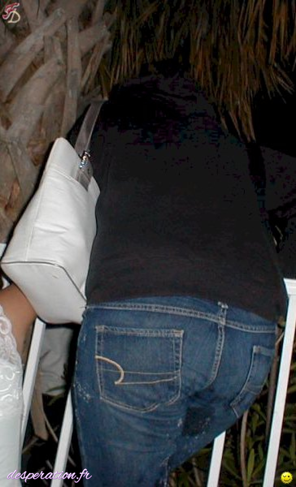 Cette pauvre dame a un accident très embarrassant devant le regard des passants.
