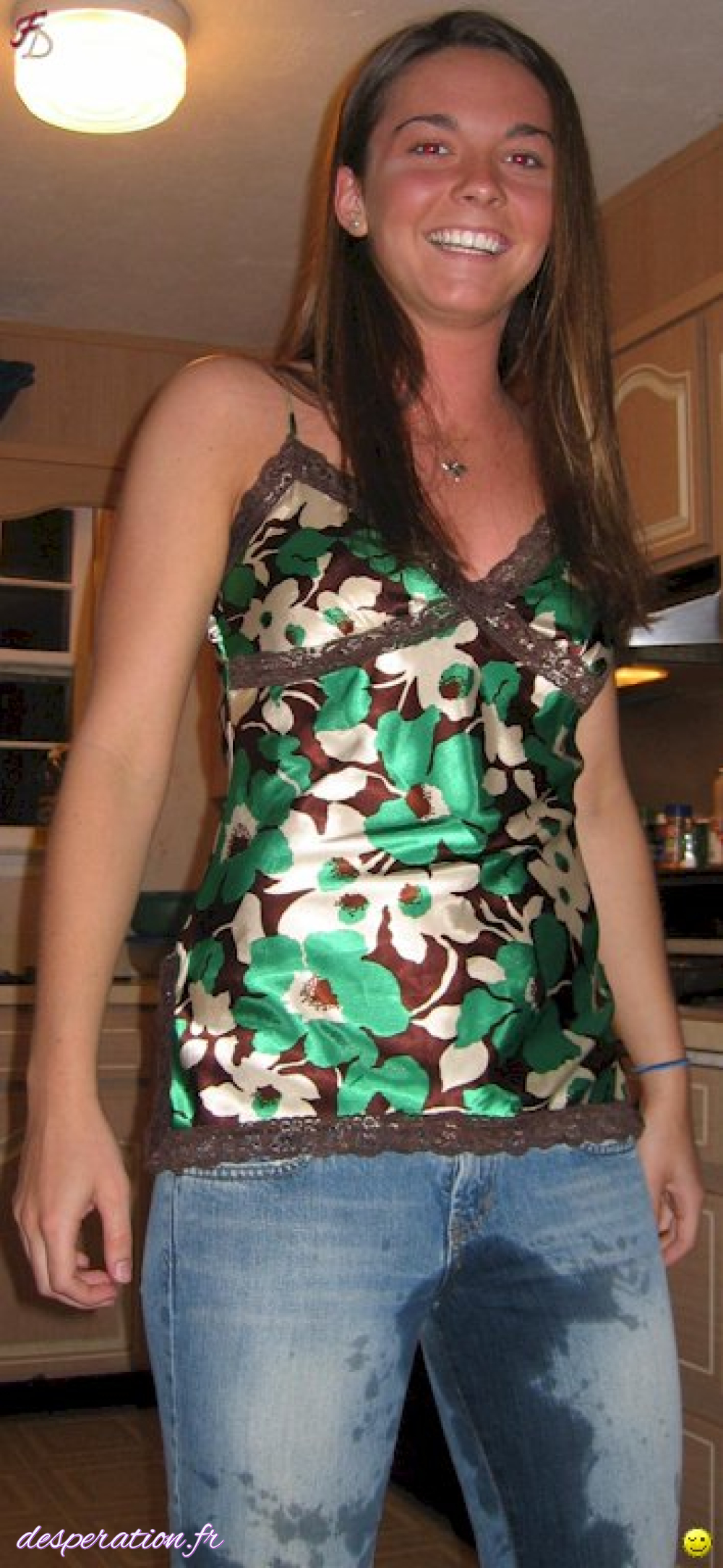 Elle est soulagée d’avoir fait pipi malgré qu’elle soit maintenant trempée