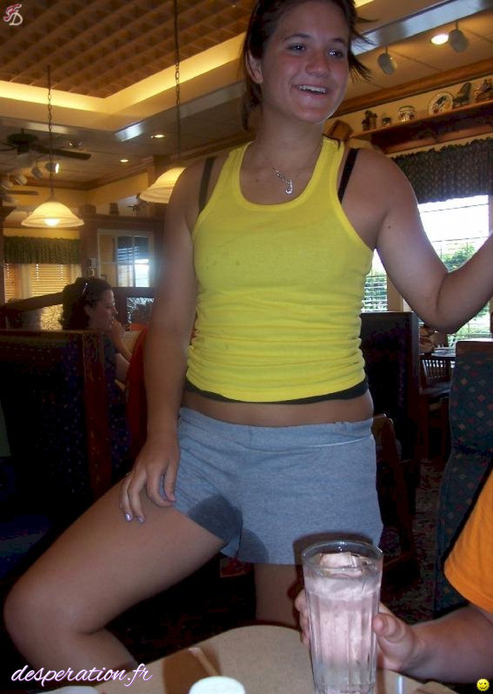 Elle vide sa vessie dans sa petite culotte trempée devant les gens.