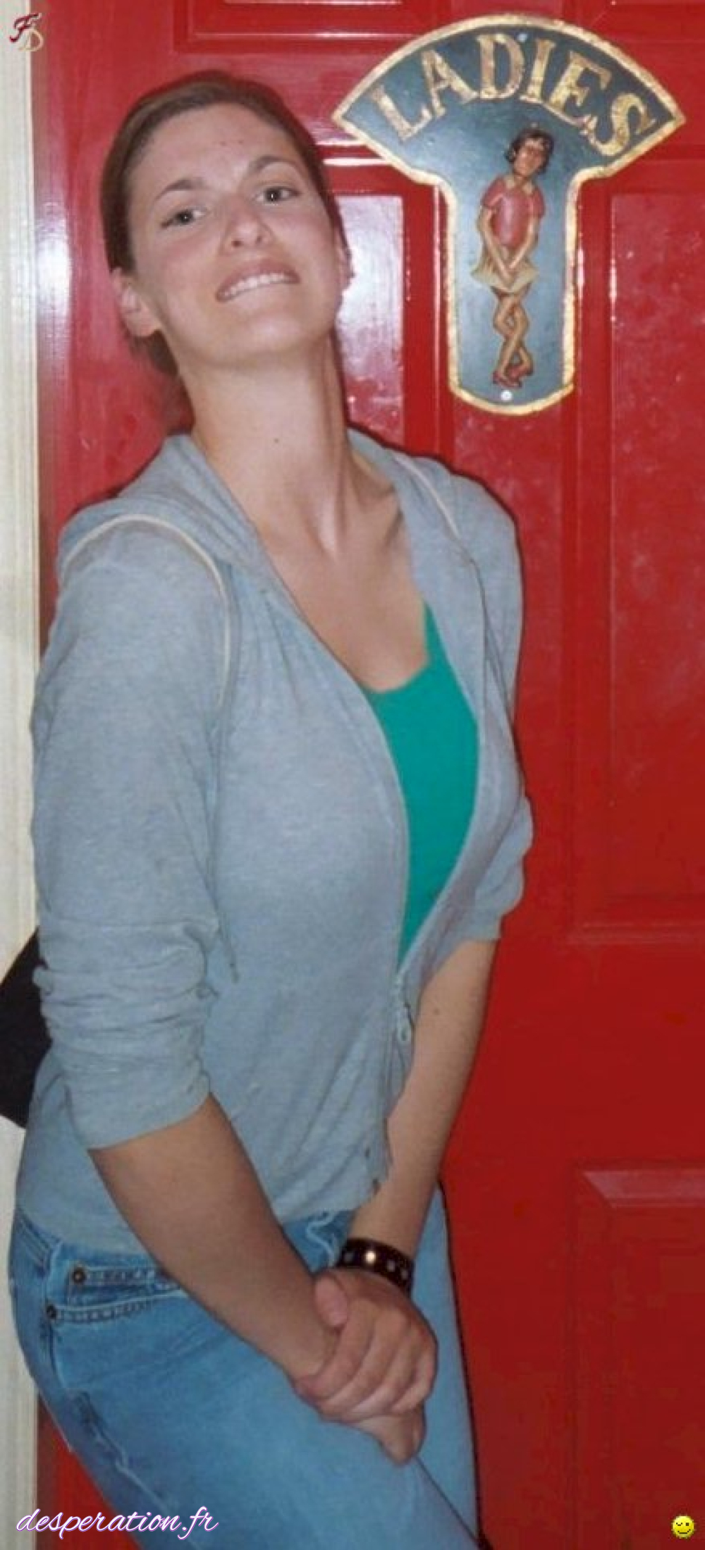 La pauvre dame a tellement envie de faire pipi qu’elle se fait dessus