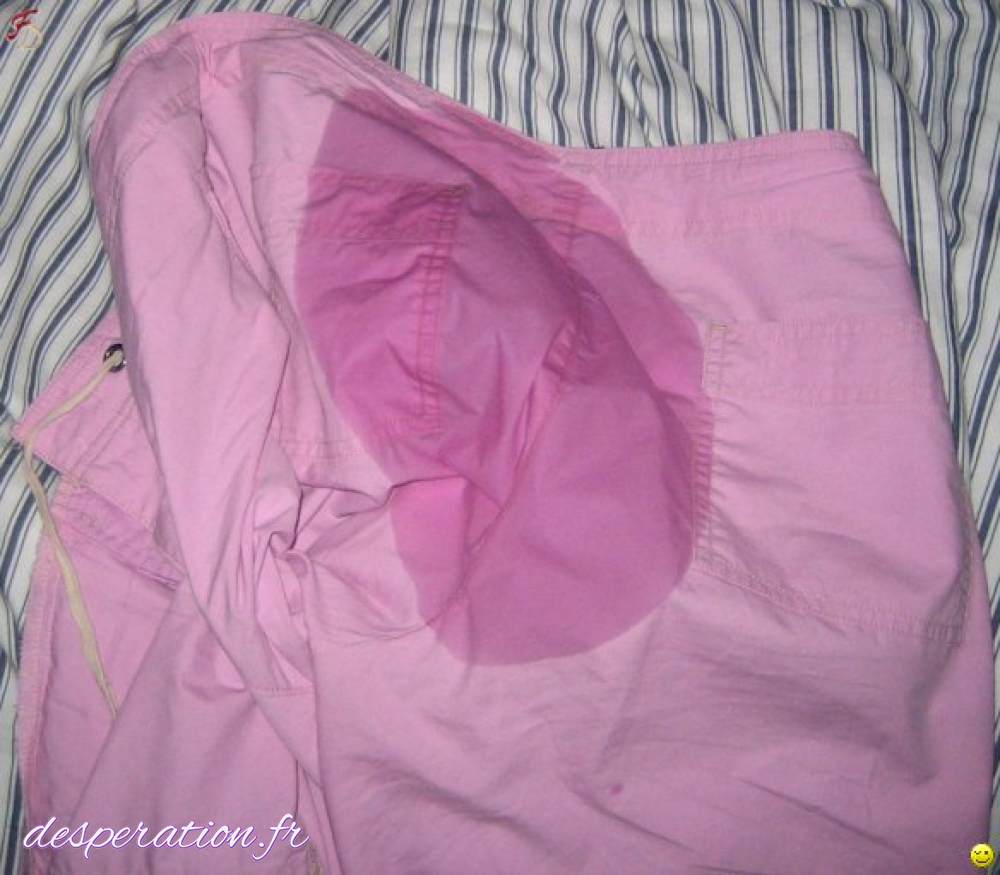 Après un long moment d’attente, elle expulse un long jet de pipi à travers sa petite culotte