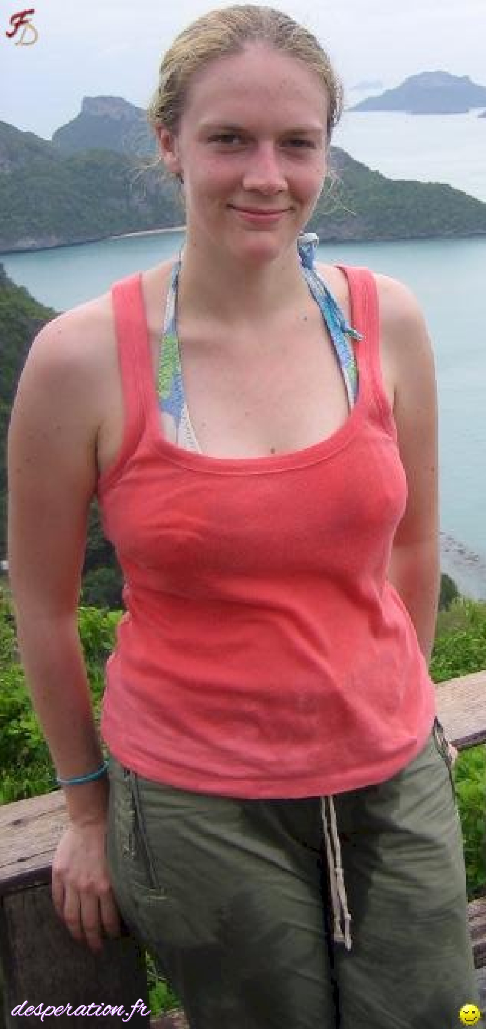 La demoiselle nous montre sa culotte toute mouillée après le desastre en public.