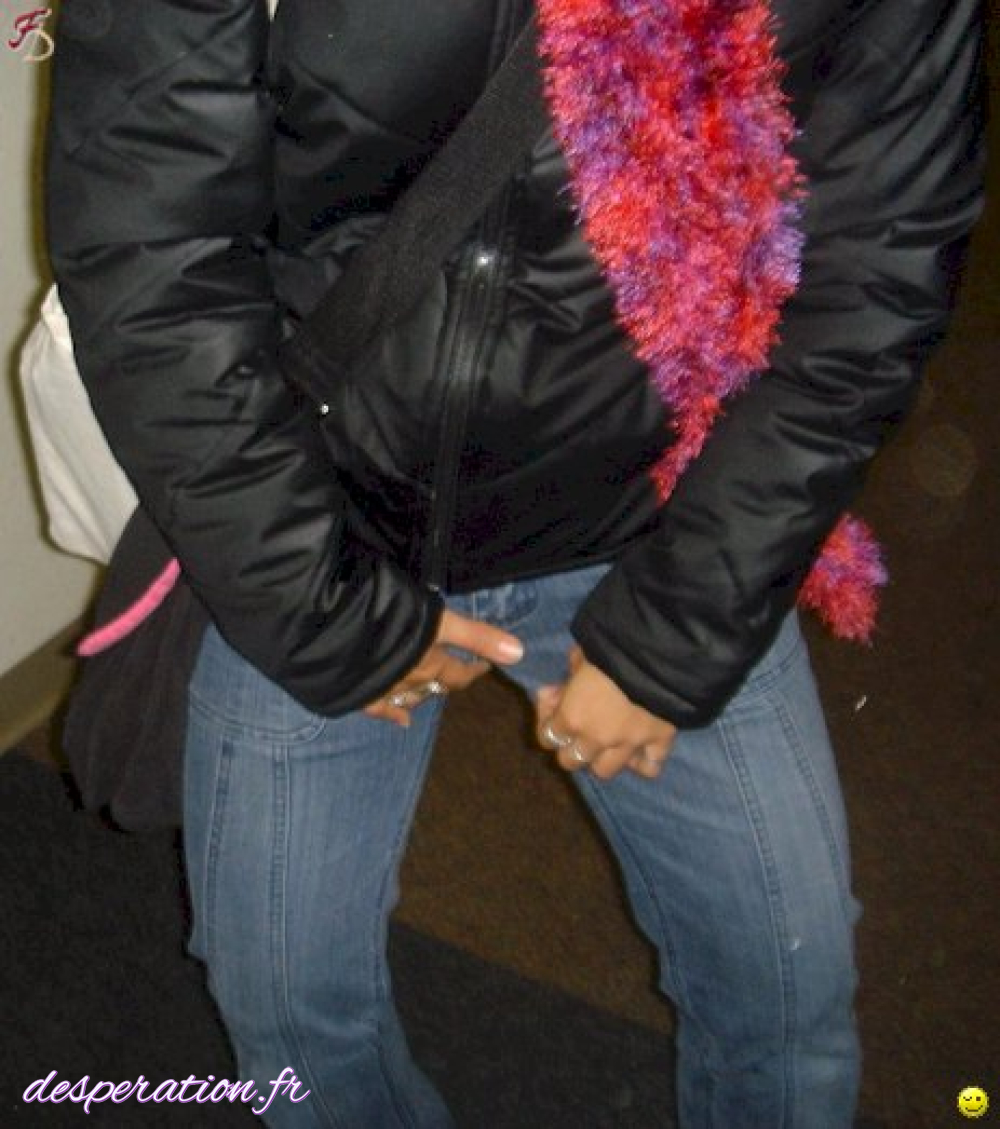 Après un long moment d’attente, elle expulse un long jet de pipi à travers sa petite culotte