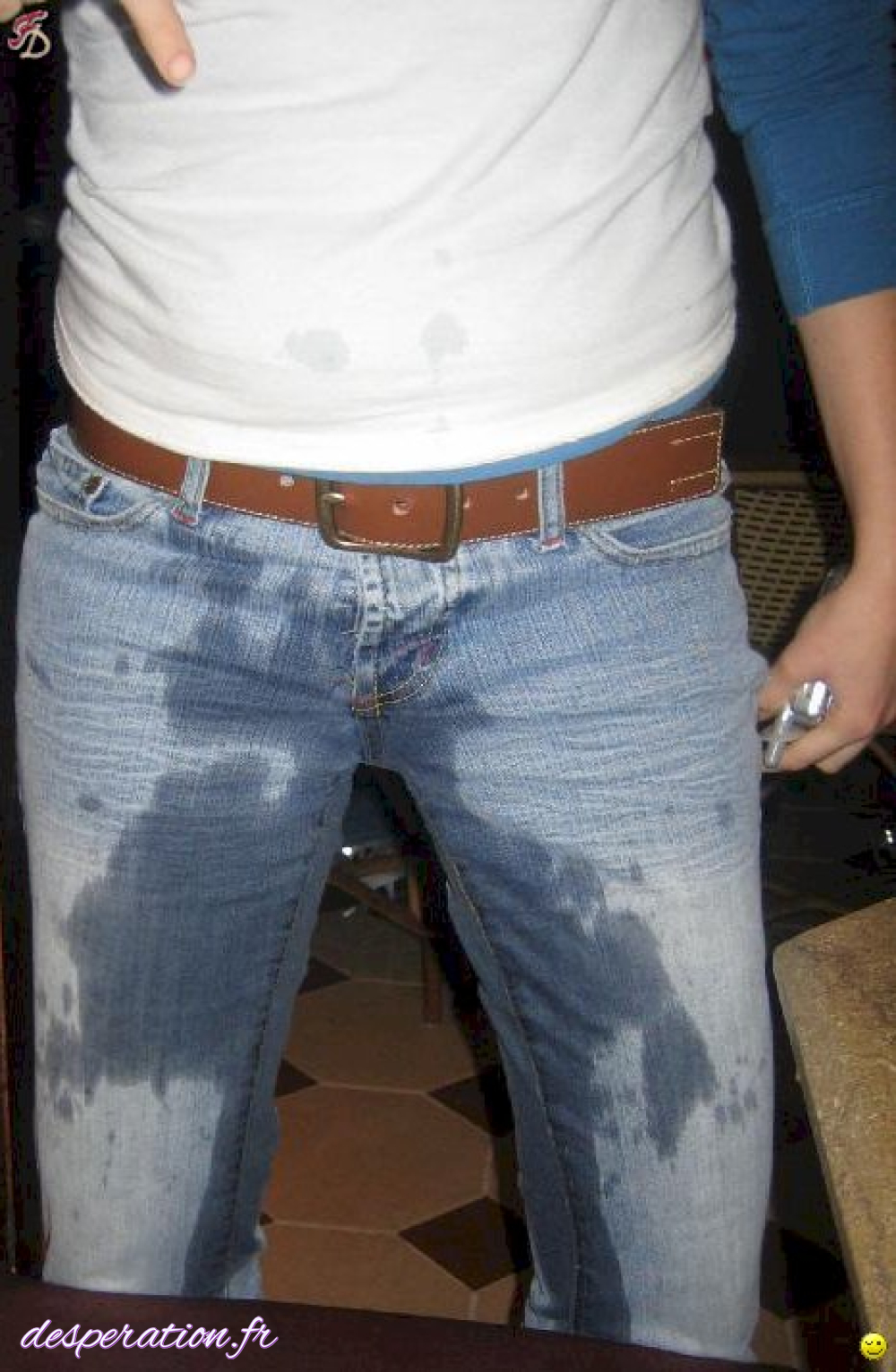 La demoiselle nous montre sa culotte toute mouillée après le desastre devant le regard des passants.