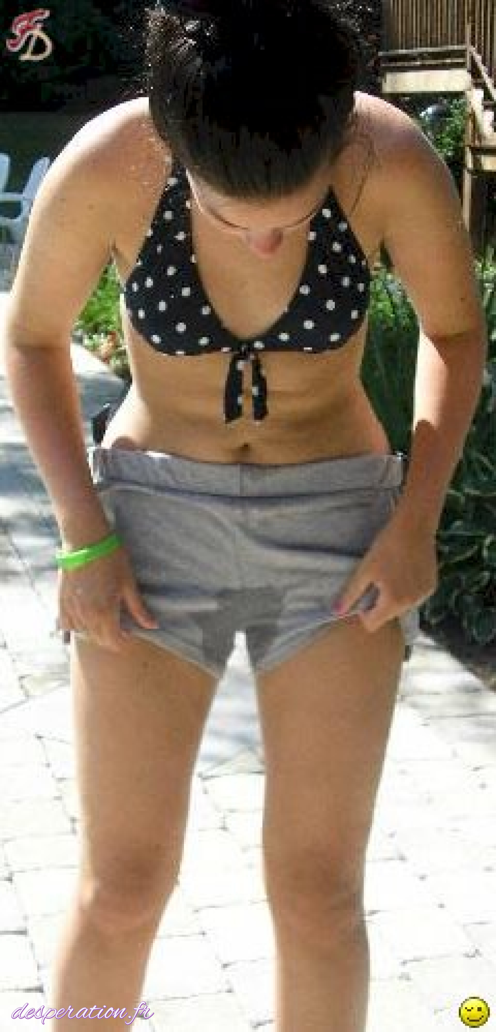 Saisie d’une envie pressante en public elle laisse échapper quelques petits jets dans sa culote