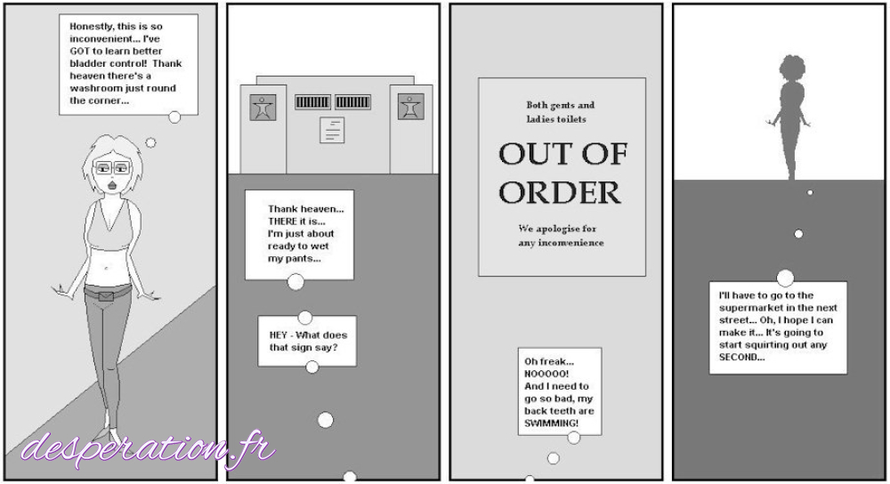 Désespérée, elle ne peut se retenir de laisser couler un jet de pipi