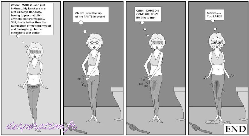 Désespérée, elle a un besoin particulièrement urgent de faire pipi devant les gens.