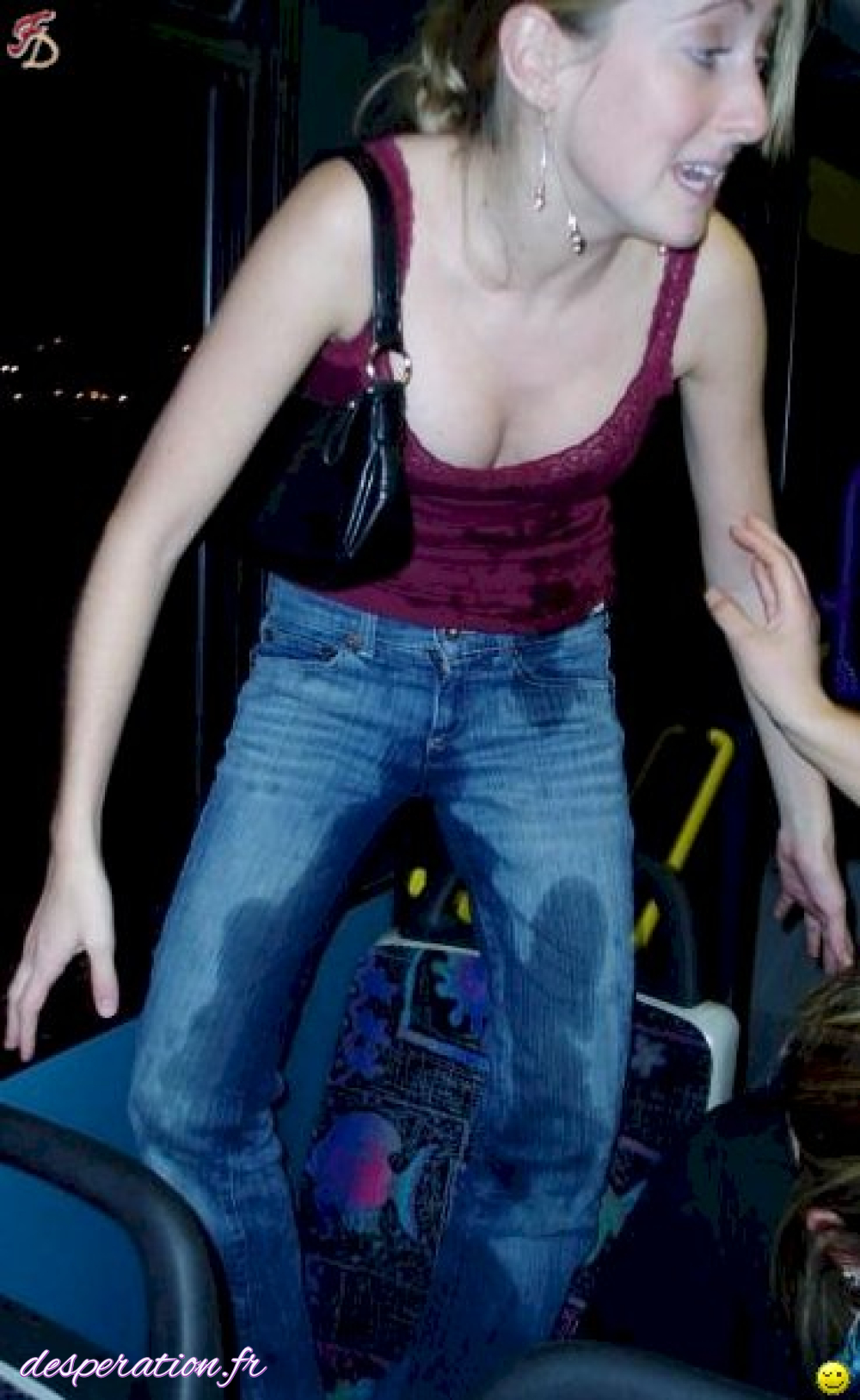 Désespérée, elle a un besoin particulièrement urgent de faire pipi au vu et au su de tout le monde.