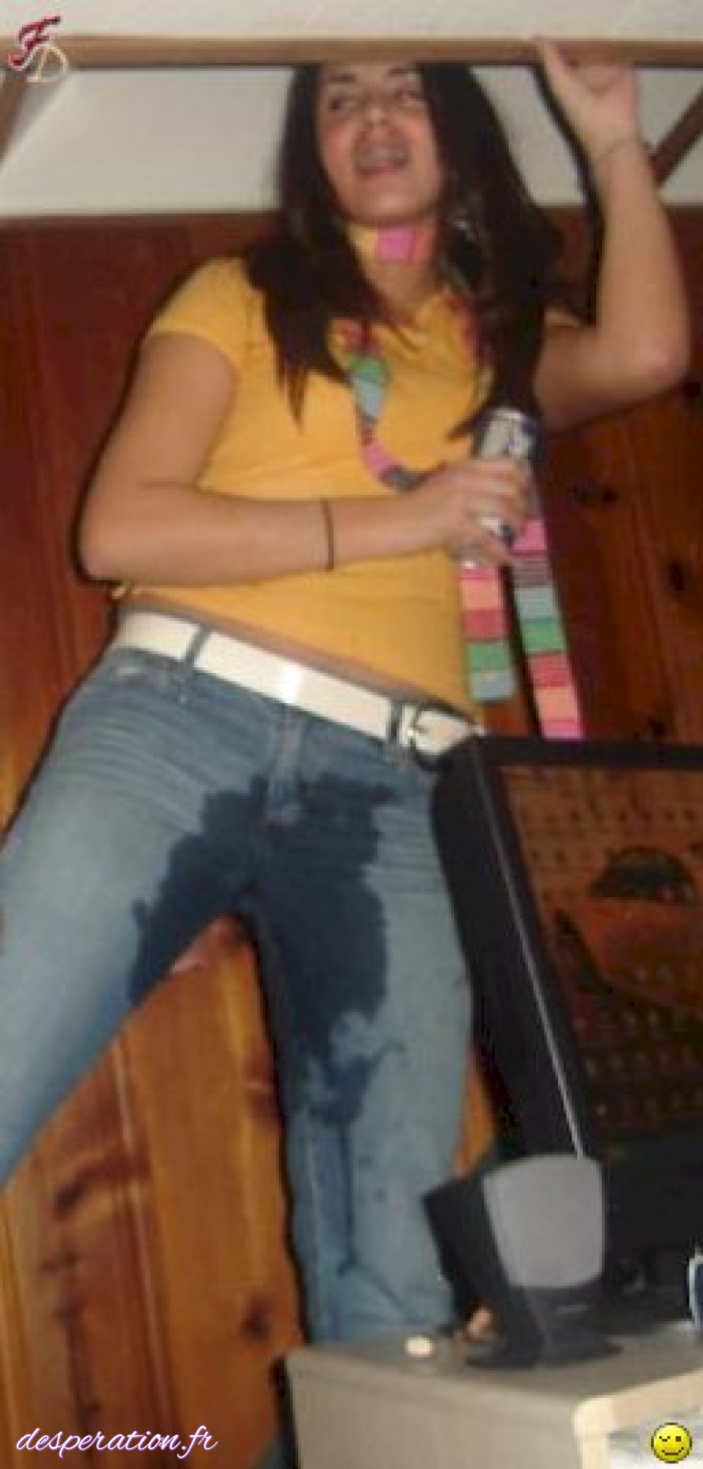 Désespérée, elle ne peut se retenir de faire pipi
