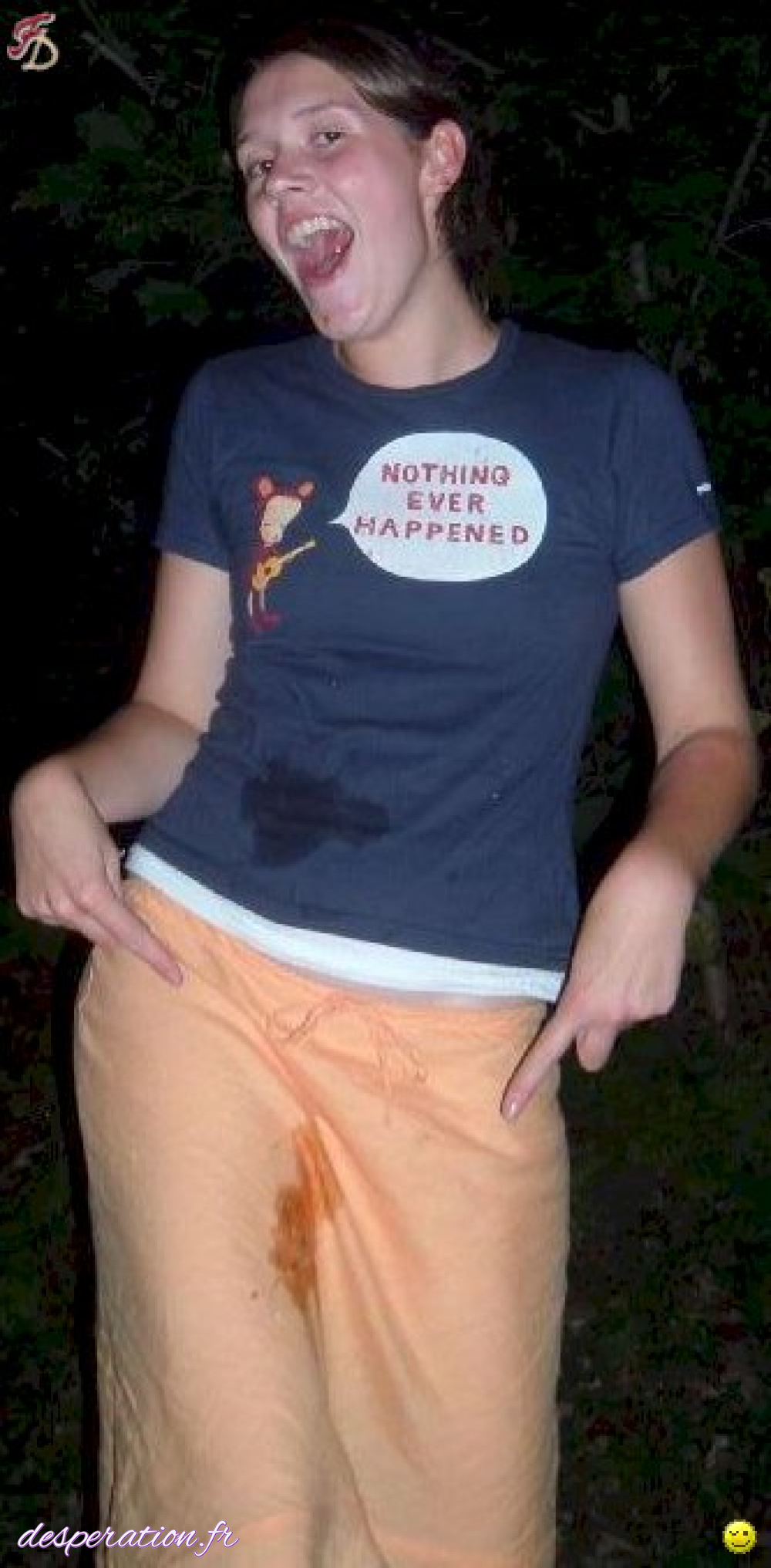 Après un long moment d’attente, elle expulse un long jet de pipi à travers sa petite culotte