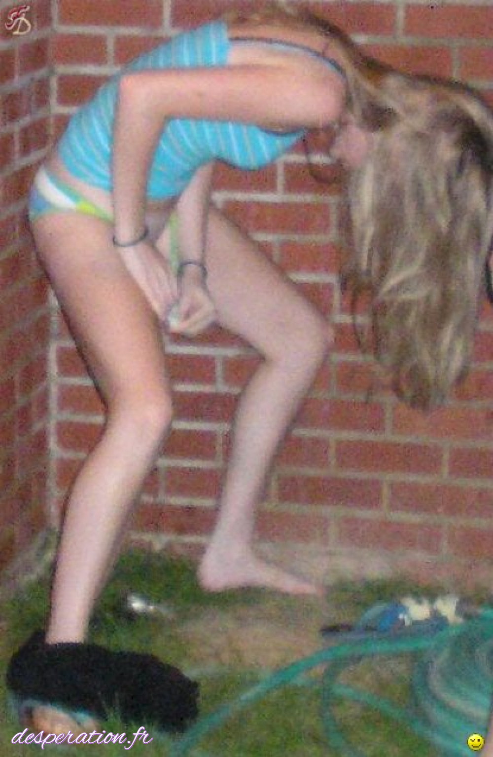 La demoiselle nous montre sa culotte toute mouillée après le desastre devant tout le monde.