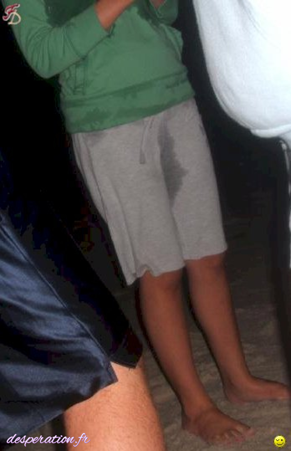 Après un long moment d’attente, elle expulse un long jet de pipi à travers sa petite culotte