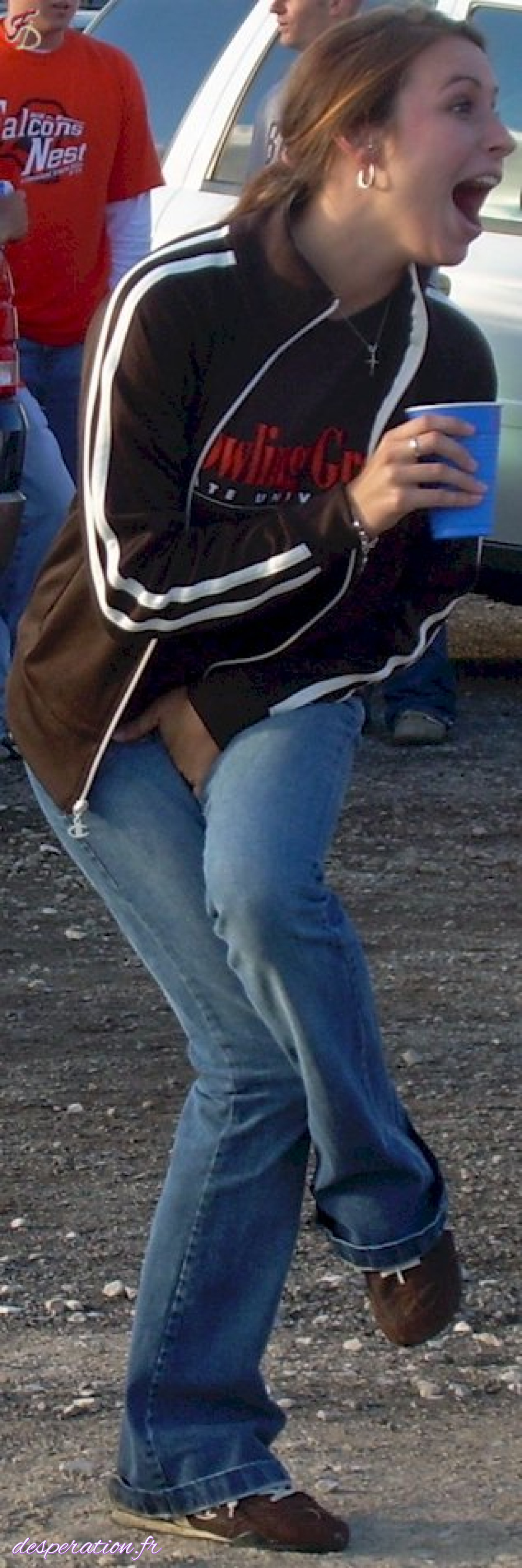 Saisie d’une envie pressante en public elle laisse échapper quelques petits jets dans sa culote