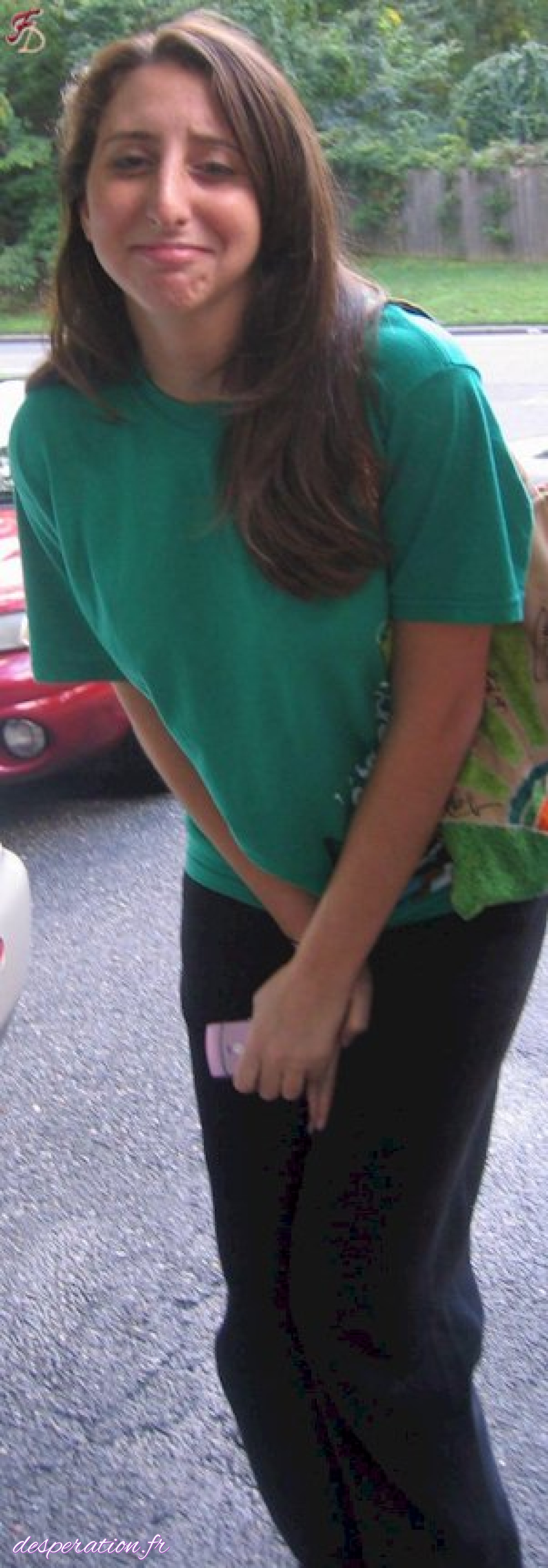 Saisie d’une envie pressante en public elle laisse échapper quelques petits jets dans sa culote