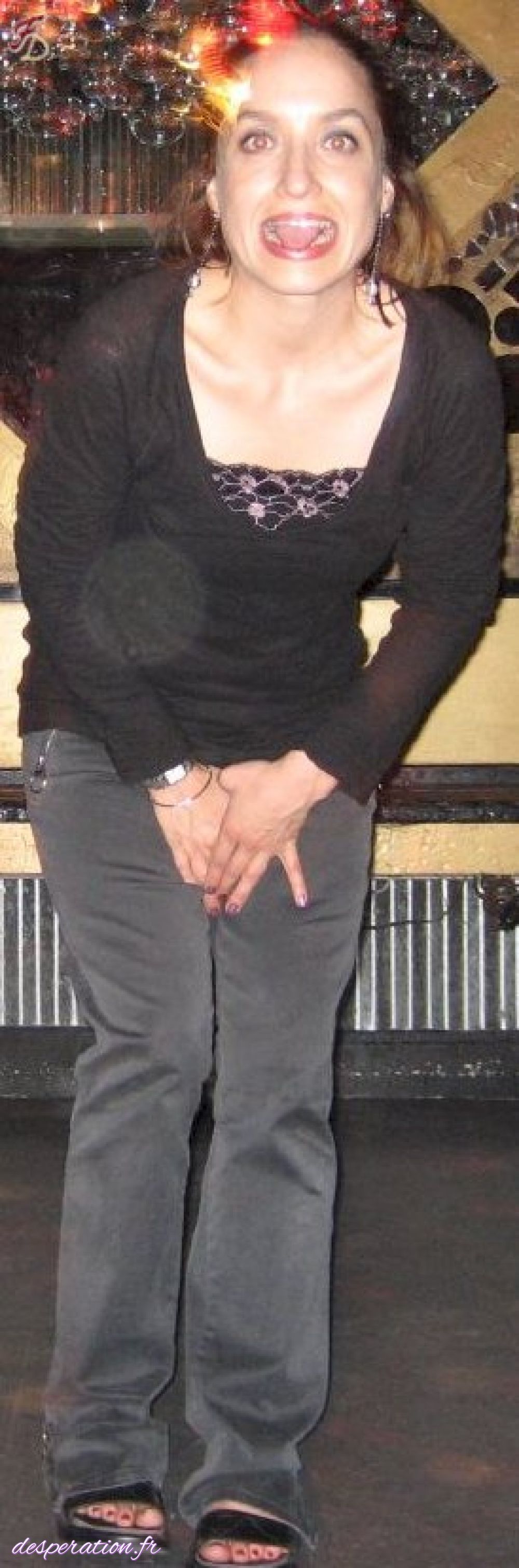 La demoiselle nous montre sa culotte toute mouillée après le desastre en public.