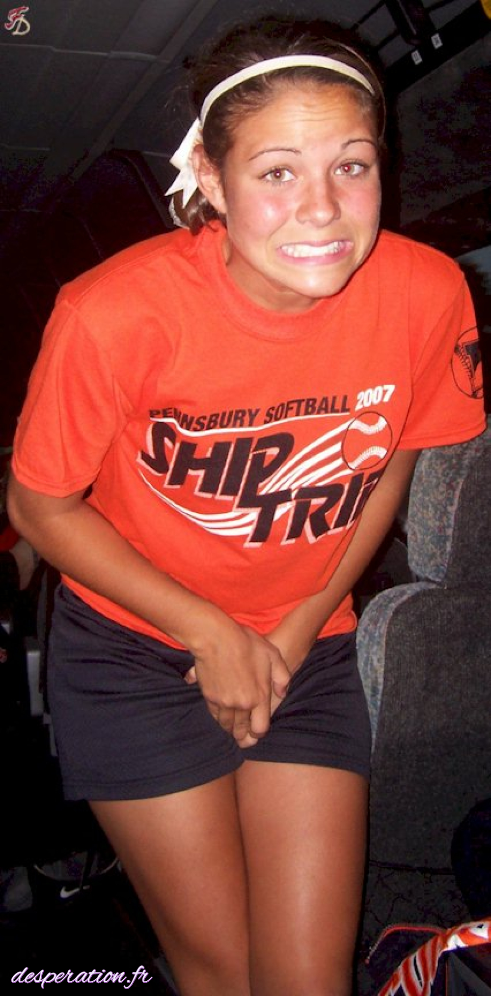 Désespérée, elle a un besoin particulièrement urgent de faire pipi en public.