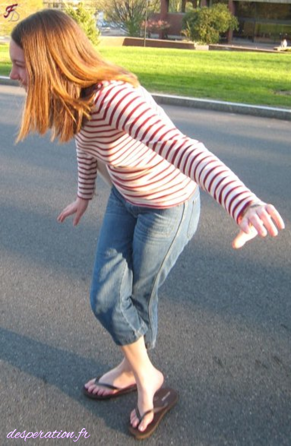 Elle vide sa vessie dans sa petite culotte trempée devant le regard des passants.